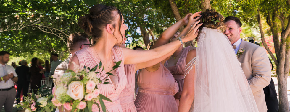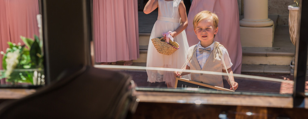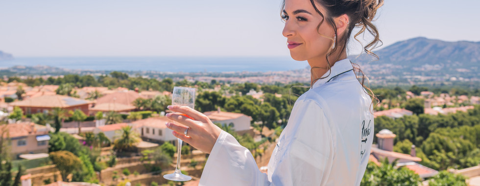 La novia se tomó los preparativos con calma para disfrutarlos con todas sus damas de honor. Aprovecharon para tomar una copa de champan y refrescarse en la piscina. Su madre le ayudó a vestirse mientras sus damas de honor y su padre esperaban impacientes. Lucia preciosa con su vestido blanco y su velo y como ella decía: 'with a very spanish touch'. Cuando su padre y sus damas vieron a la preciosa novia no pudieron contener las lágrimas. Nosotros tampoco.