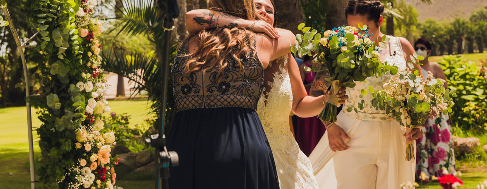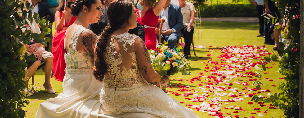 La emoción se notaba en el ambiente. Todo estaba listo. El arco lleno de flores, un pasillo con pétalos... Los invitados ya habían llegado y esperaban a las protagonistas de esta historia. Sonó la música y los coches empezaron a llegar. Todos se pusieron en pié para recibir a las novias que llegaban acompañadas de sus padres. Ambas, agradecidas de poder verse por fin, no pudieron contener las lágrimas.